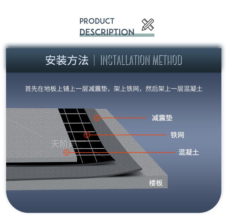 減振墊主要應用于KTV、酒吧、健身房、住宅、賓館、酒店、學校、商務大廈;KTV、夜總歌舞廳等娛樂場所及其它需要隔音減振的地方,具有的阻尼減振效果,是一種性價比高的輔助地板材料。