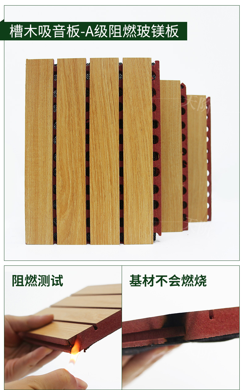 陶鋁裝飾吸音板采用多種不同的無機材料的組合,以無機材料為主要材料,通過添加導(dǎo)電瓷土粉、導(dǎo)電云母粉等導(dǎo)電材料、增強纖維等材料,采用無機黏合劑粘合,自然固化的方法而 成的特殊板 材,再在其表面復(fù)合多種不同的裝飾材料,從而形成不同的裝飾效果。實現(xiàn)吸聲的技術(shù)原理是:一是在材料本身內(nèi)形成多孔結(jié)構(gòu),達到一定的吸聲效果,其二是在成 品板上通過開槽、鉆孔形成穿孔板共振結(jié)構(gòu),達到吸聲效果。并配合吸聲無紡布進一步提升吸音效果。