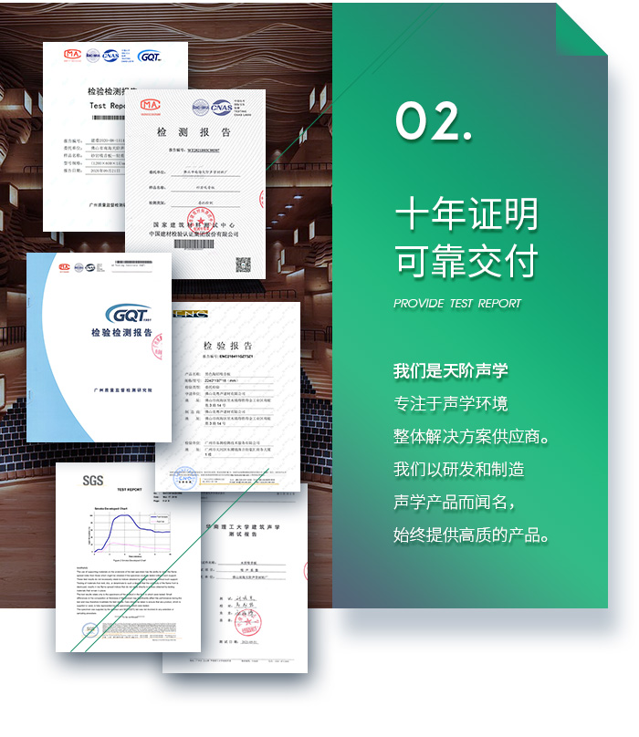 天階在聲學(xué)材料領(lǐng)域不斷提高自身的產(chǎn)品品質(zhì)和服務(wù)水平,使公司產(chǎn)品長(zhǎng)期得到了國(guó)內(nèi)諸多大學(xué)的聲學(xué)教授、國(guó)家大型建工集團(tuán)、國(guó)內(nèi)眾多知名裝飾設(shè)計(jì)公司的大力推廣。我們?cè)诮窈蟀l(fā)展的道路上,將更加狠抓產(chǎn)品品質(zhì),信守合作承諾,與廣大新老客商攜手共進(jìn)共贏。