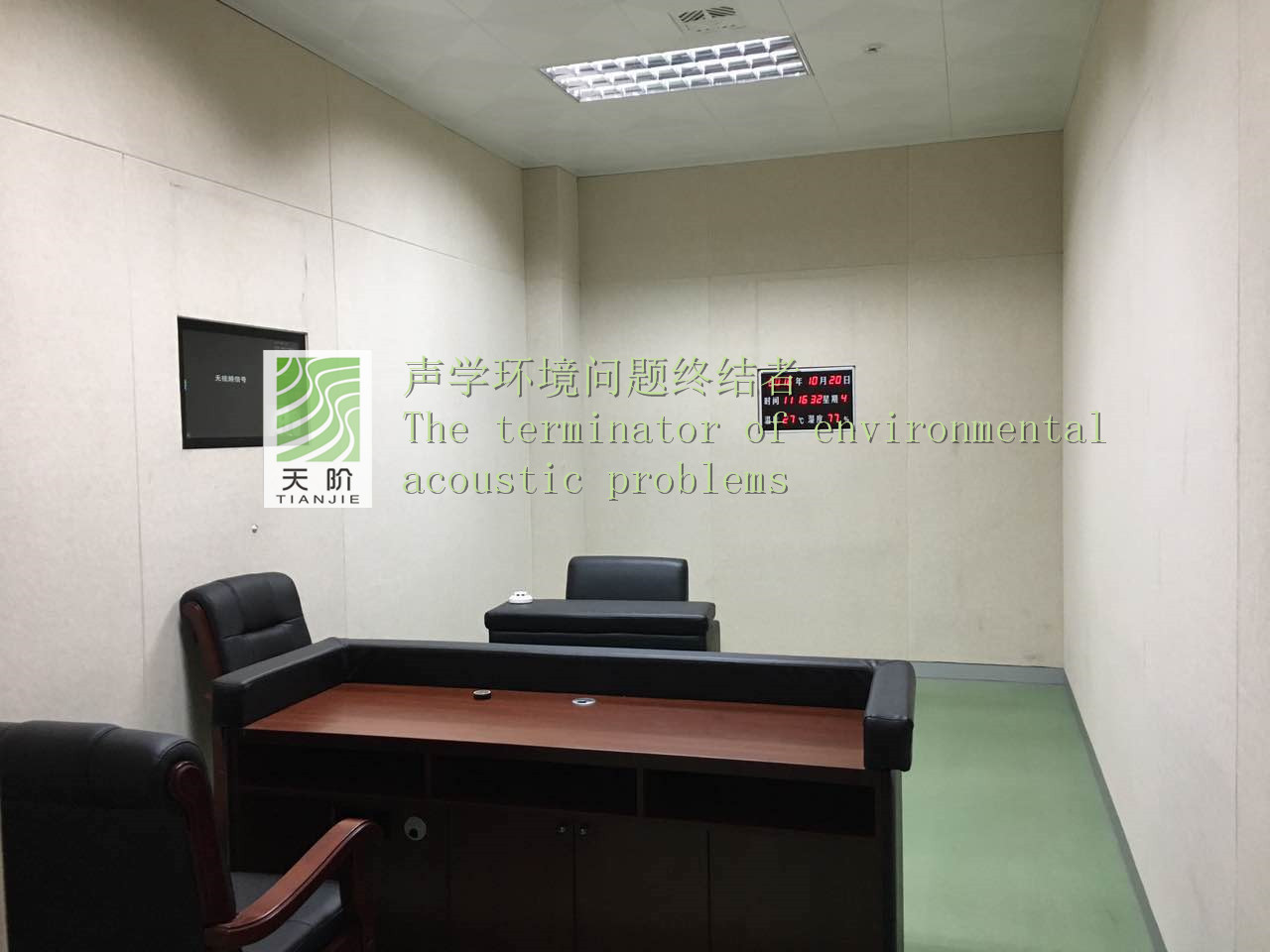 聚酯纖維吸音板具有高密度、環(huán)保、防火、吸聲頻帶寬、裝飾性強、施工簡單、易于切割、無粉塵污染等性能,飾面顏色及材料選擇性廣、能很好地滿足客戶多樣化的聲學(xué)及裝飾需求。此次惠州公安局采用天階牌聚酯纖維吸音板作為審訊室的減噪處理。