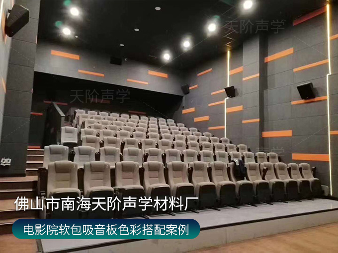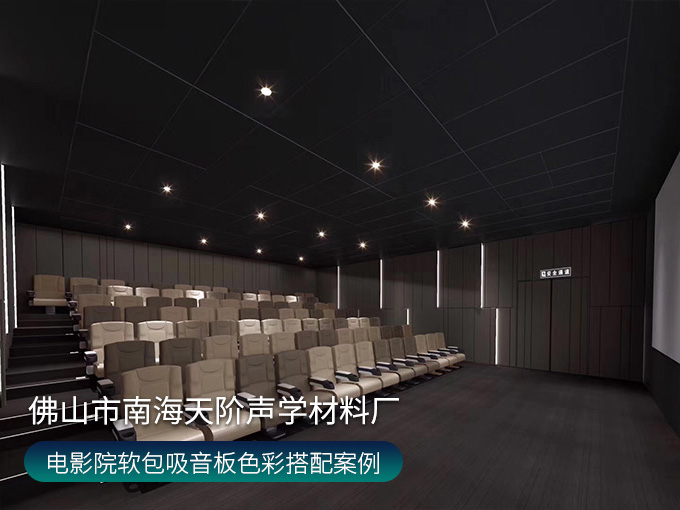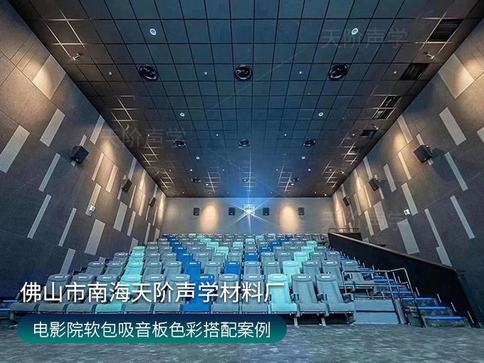 低調(diào)高雅的灰色灰色調(diào)電影院,墻面選用聚酯纖維吸音板,拼色安裝設(shè)計(jì),做不燃處理,舒適又安心,吸收噪音雜音很有效果。