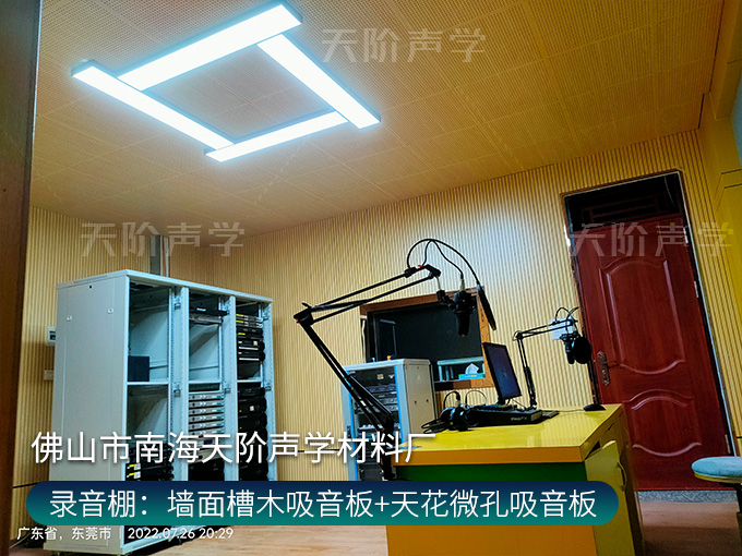 錄音棚:墻面槽木吸音板+天花微孔吸音板