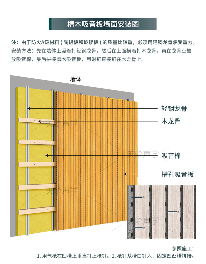 4、安全防火――具有槽木吸音板防火等級A1。這點己通過專業部門檢測通過。