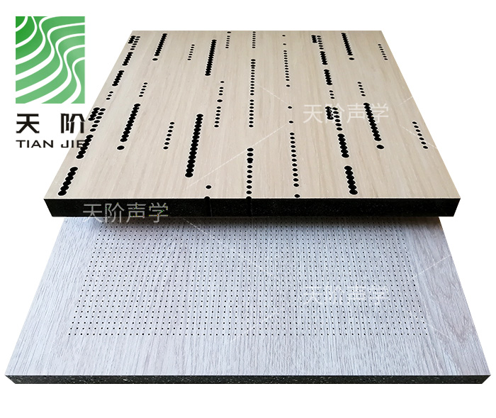 天階聲學(xué)孔木吸音板采用高質(zhì)的中纖板、具有環(huán)保、防火、防潮等性能,飾面顏色及材料選擇性廣,能很好地滿足客戶多樣化的聲學(xué)及裝飾需求。較槽木吸音板,孔木吸音板相對抗撞擊能力強。