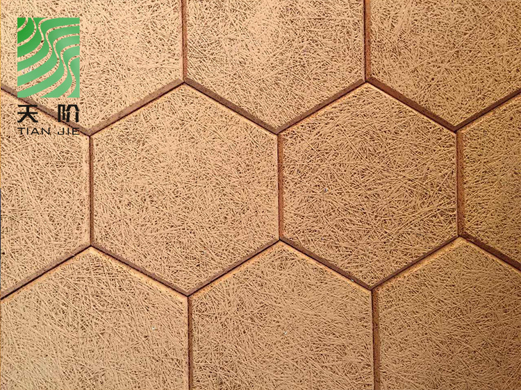 木絲吸音板以白楊木纖維為原料,結合獨特的無機硬水泥粘合劑,采用連續操作工藝,在高溫、高壓條件下制成。該產品擁有只有通過合成若干不同的建筑材料才能獲得的物理特性。外觀獨特、吸音良好--獨有的表面絲狀紋理,給人一種原始粗獷的感覺,滿足了現代人回歸自然的理念。表面可做飾面噴色和噴繪處理.